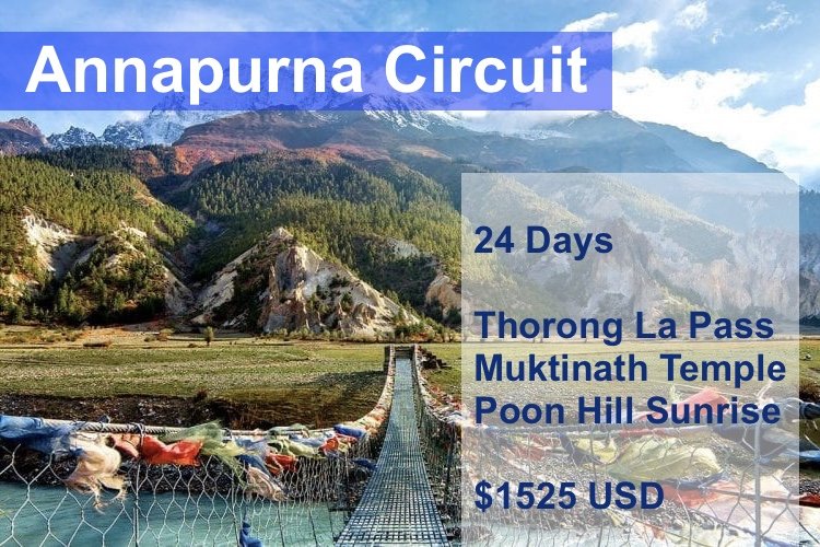 Experience the diversity of Nepal on the full Annapurna Circuit trek as you circumnavigates the huge Annapurna Massif which at 8091 metres tall is the 10th highest in the world. The circuit passes through agricultural fields, beautiful forests and the desolate area of the Mustang Valley. The highest section of the trail crosses Throung La pass at 5416 metres and takes you though some of the most spectacular mountain scenery.